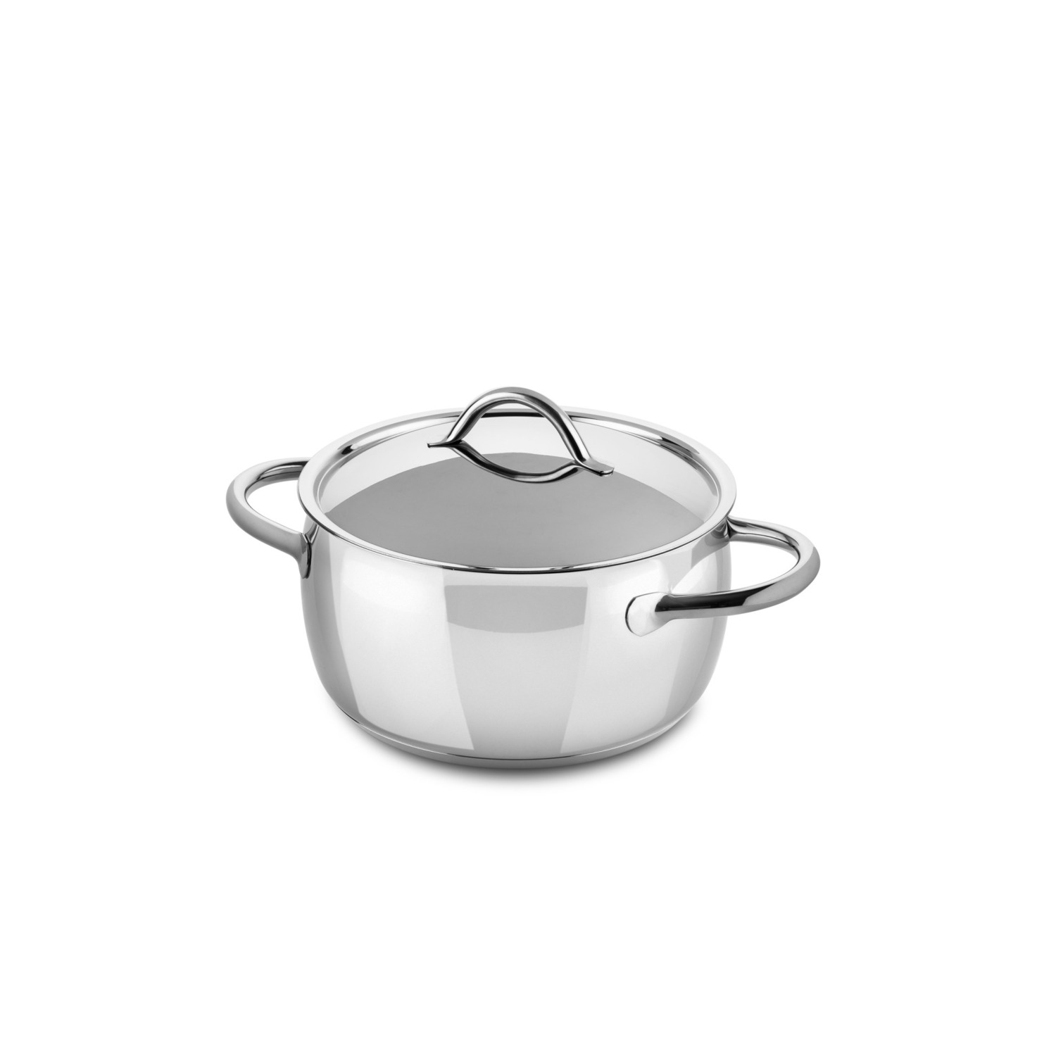 I manici vuoti elettrosaldati a proiezione non sono un dettaglio decorativo: la struttura cava riduce la conduzione termica, mantenendo la presa sicura e confortevole anche durante cotture prolungate. Il bordo antigoccia rinforzato controlla ogni versaggio con precisione, preservando la pulizia del piano di lavoro e la compostezza del gesto. Disponibile in cinque diametri, dalla misura più raccolta a quella pensata per le grandi occasioni, questa casseruola è lavabile in lavastoviglie e coperta da garanzia a vita: perché chi la costruisce sa che non avrà bisogno di essere sostituita.