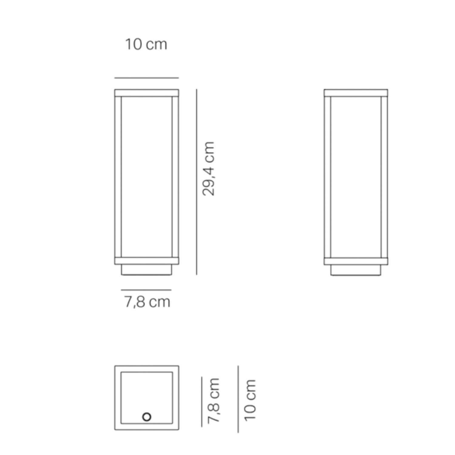 - Dimensioni: 10 × 10 cm base, altezza 29,4 cm