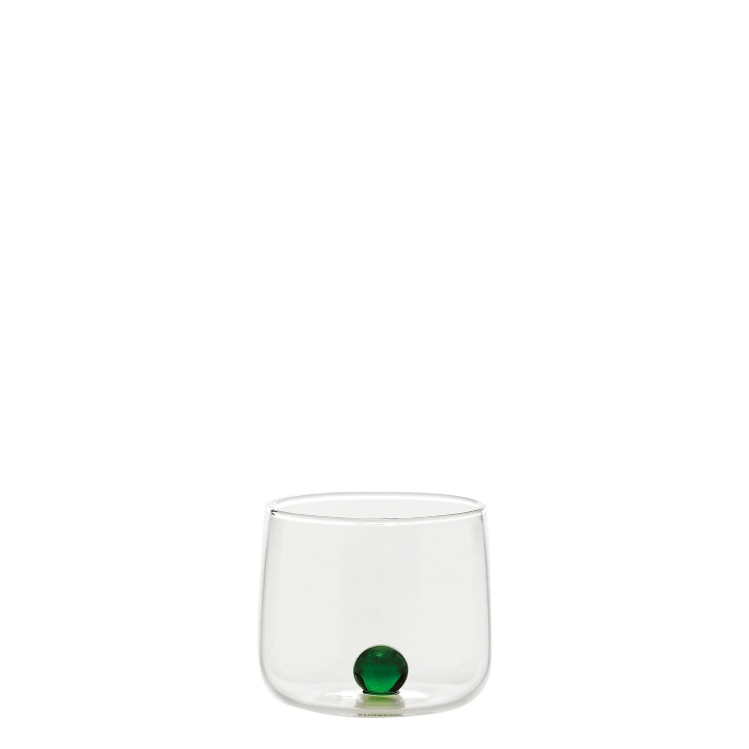 Caratterizzato da una bilia verde sul fondo. Ideato dal noto Designer Federico De Majo, viene realizzato in vetro borosilicato lavorato a mano.