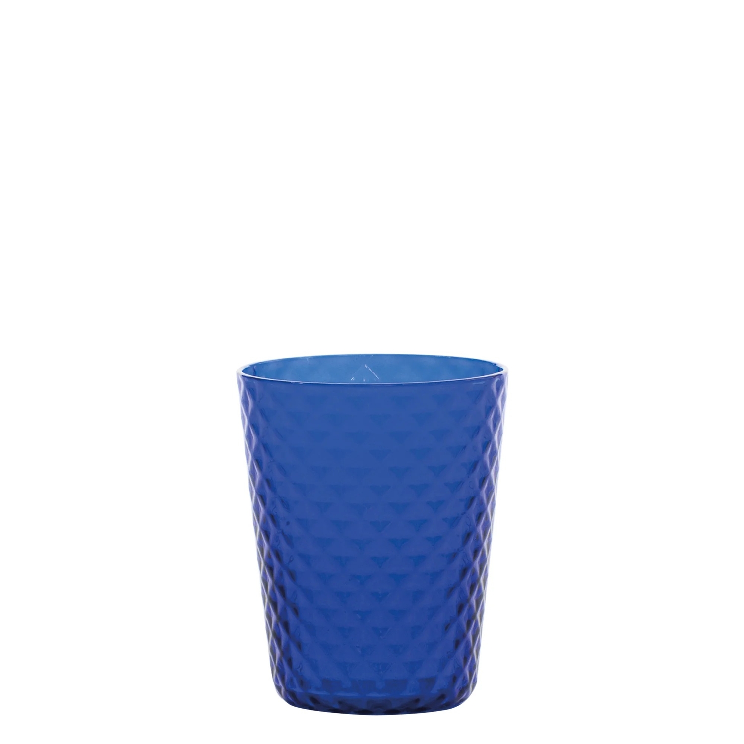Isolano Tumbler un set da 6 bicchieri blu che si distingue per la linea sintetica combinata al prezioso decoro della superficie, realizzato con una tradizionale tecnica artigianale che dona una texture a effetto diamantato a ogni pezzo.