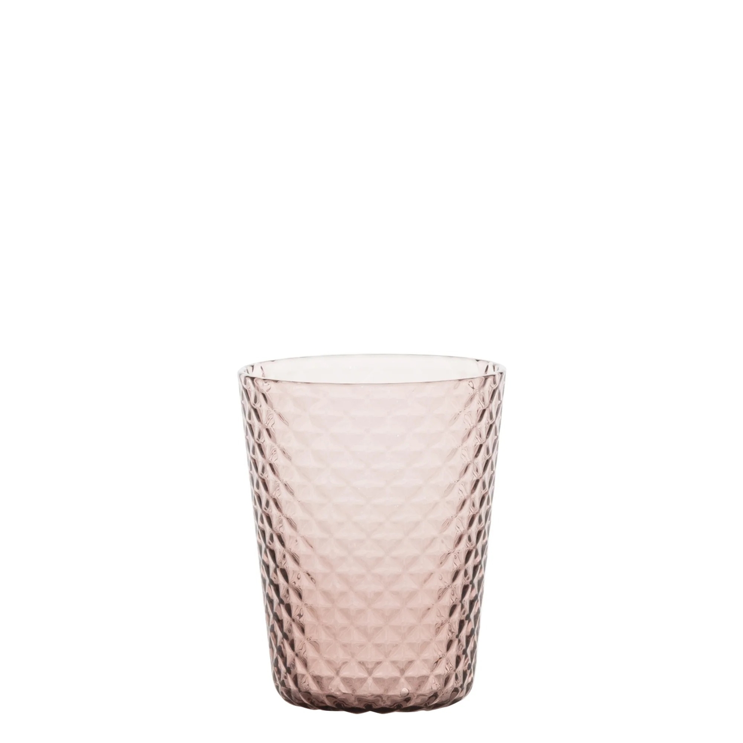 Isolano Tumbler un set da 6 bicchieri color viola ametista che si distingue per la linea sintetica combinata al prezioso decoro della superficie, realizzato con una tradizionale tecnica artigianale che dona una texture a effetto diamantato a ogni pezzo.
