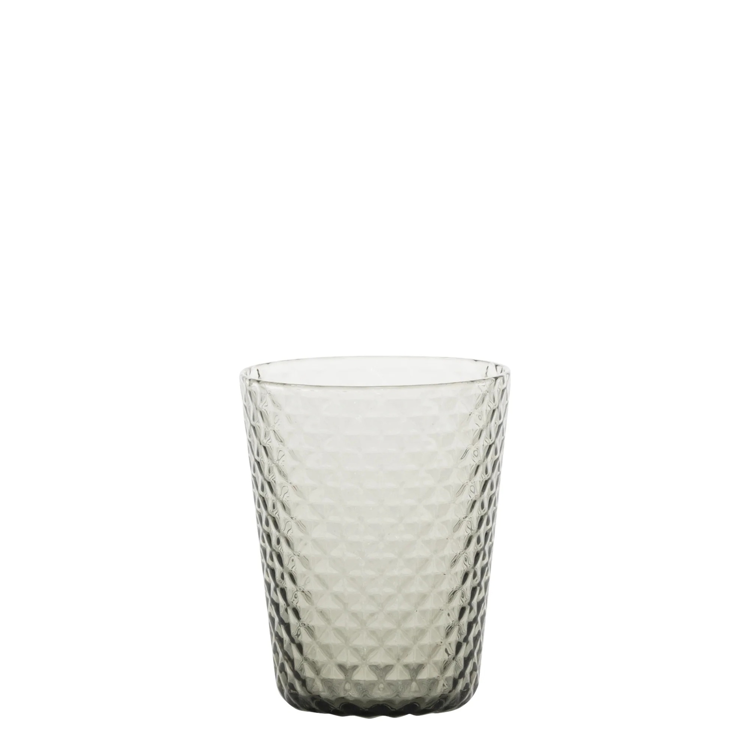 Isolano Tumbler un set da 6 bicchieri grigi che si distingue per la linea sintetica combinata al prezioso decoro della superficie, realizzato con una tradizionale tecnica artigianale che dona una texture a effetto diamantato a ogni pezzo.