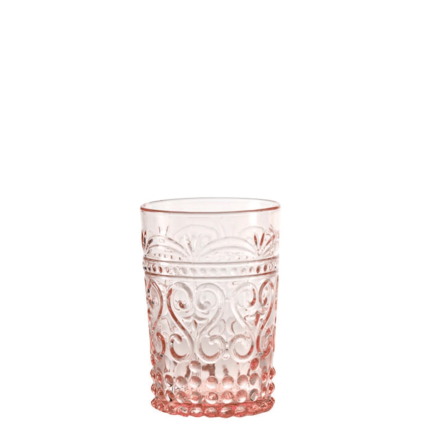 Provenzale Tumbler set da 6 bicchieri monocromatici rosa caratterizzati da un decoro a rilievo romantico di ispirazione francese.