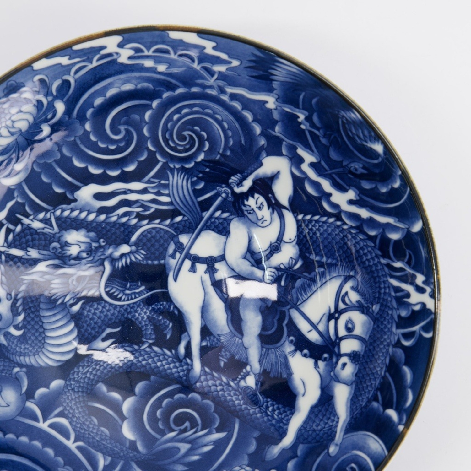 Yakuza Dragon una Bowl in porcellana blu e bianca con protagonista un drago.