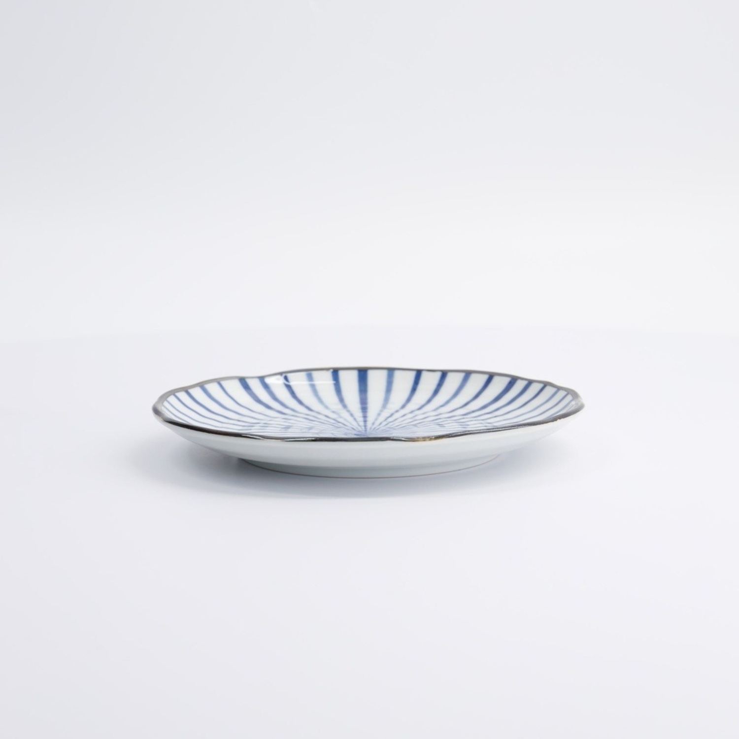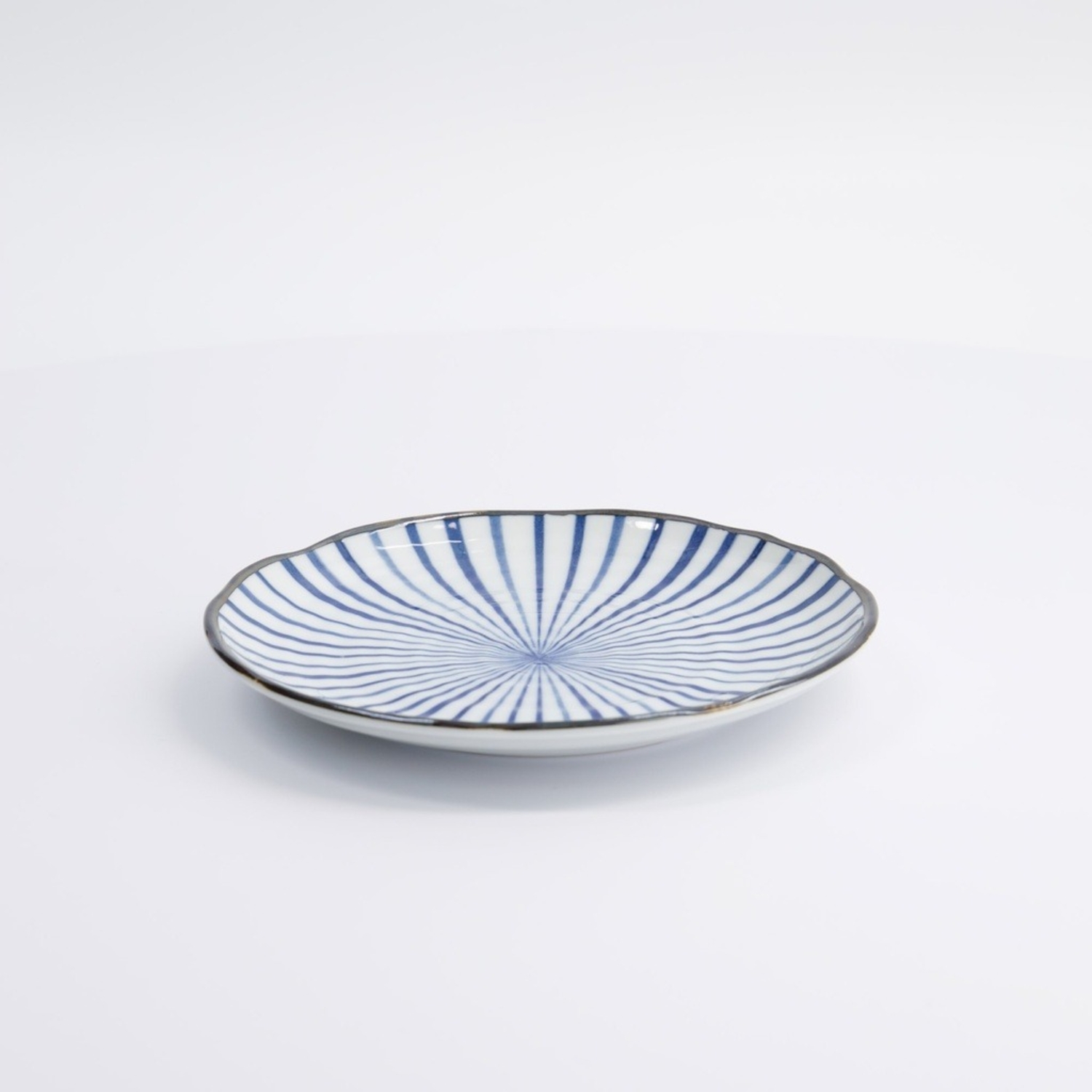 Natsu Tokusa Plate è un piatto giapponese in porcellana bianca e blu con decorazione a raggiera.