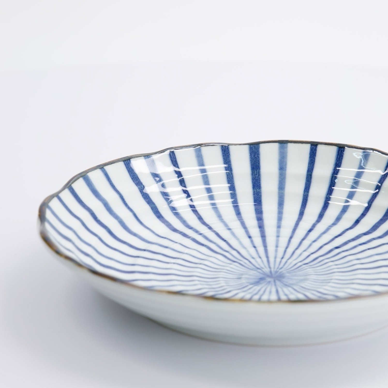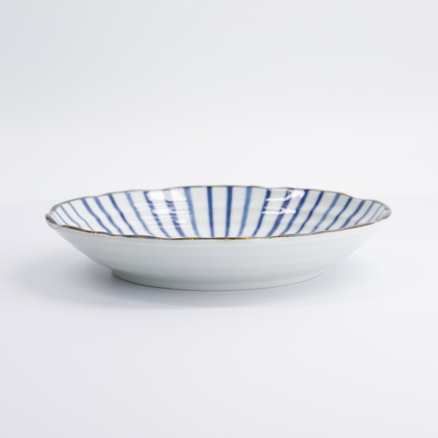 Natsu Tokusa Plate è un piatto tondo giapponese in porcellana bianca con decorazione blu a raggiera.