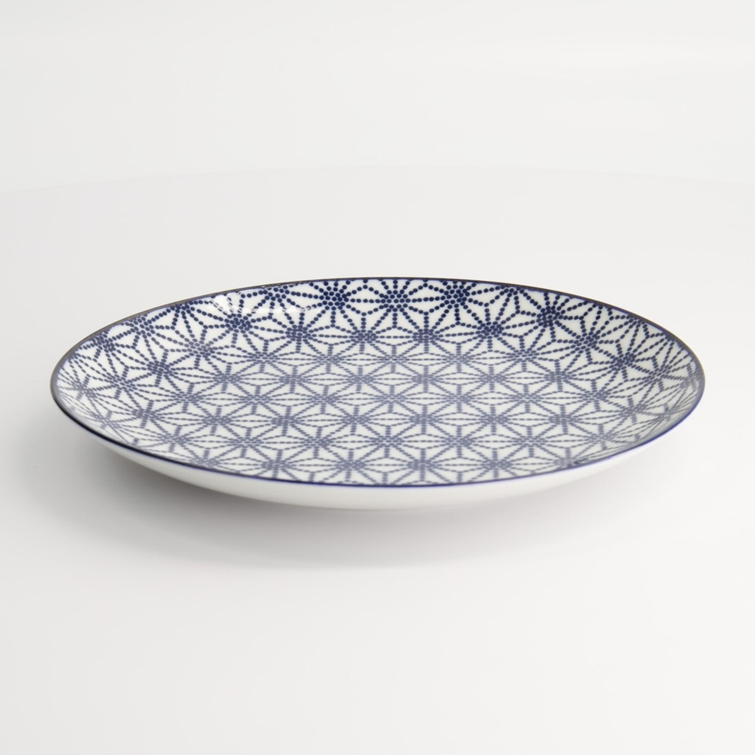 Nippon Blue Plate Star è un piatto tondo giapponese in porcellana bianca con motivo a stelle bianche e blu.