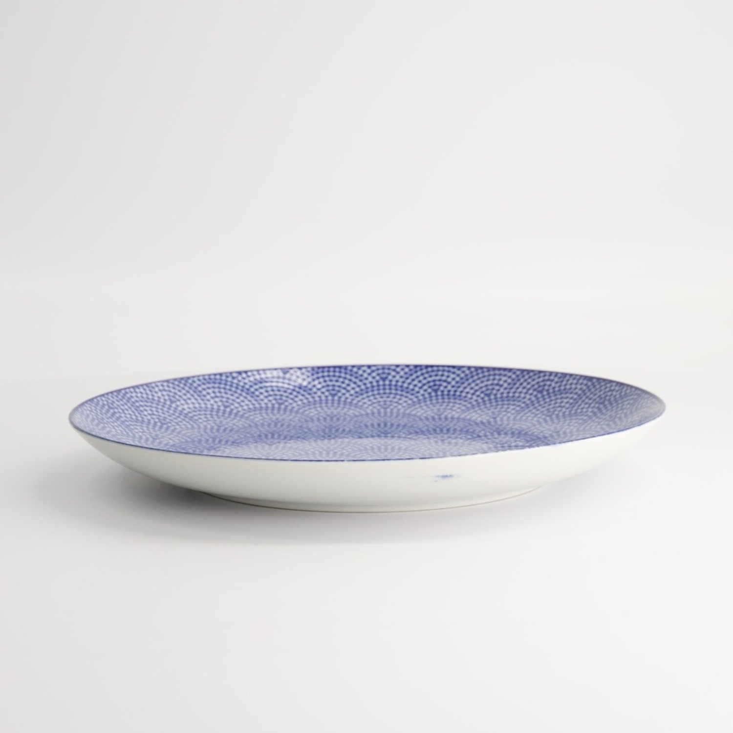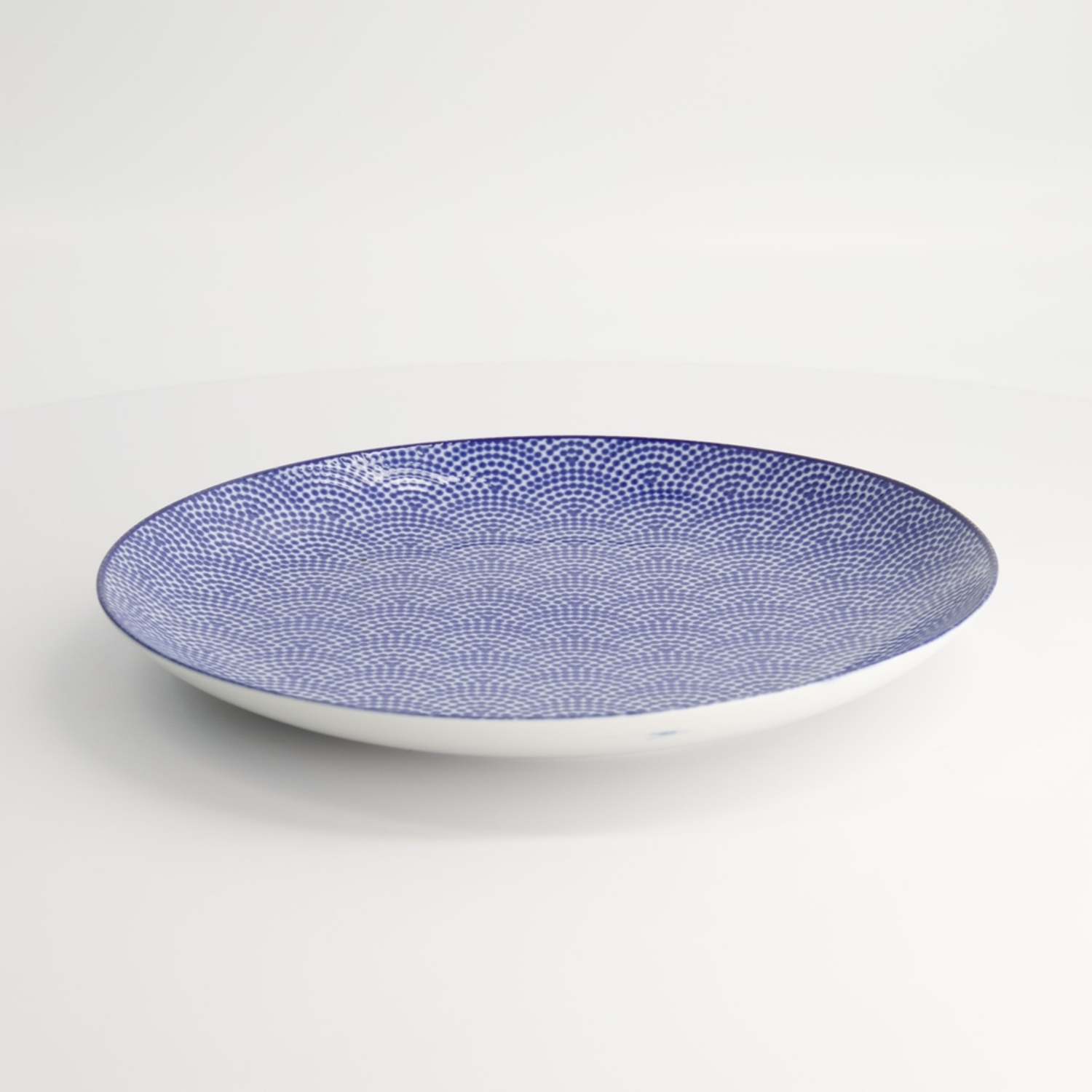 Nippon Blue Plate Dots è un piatto tondo giapponese in porcellana bianca con decorazione a puntini.