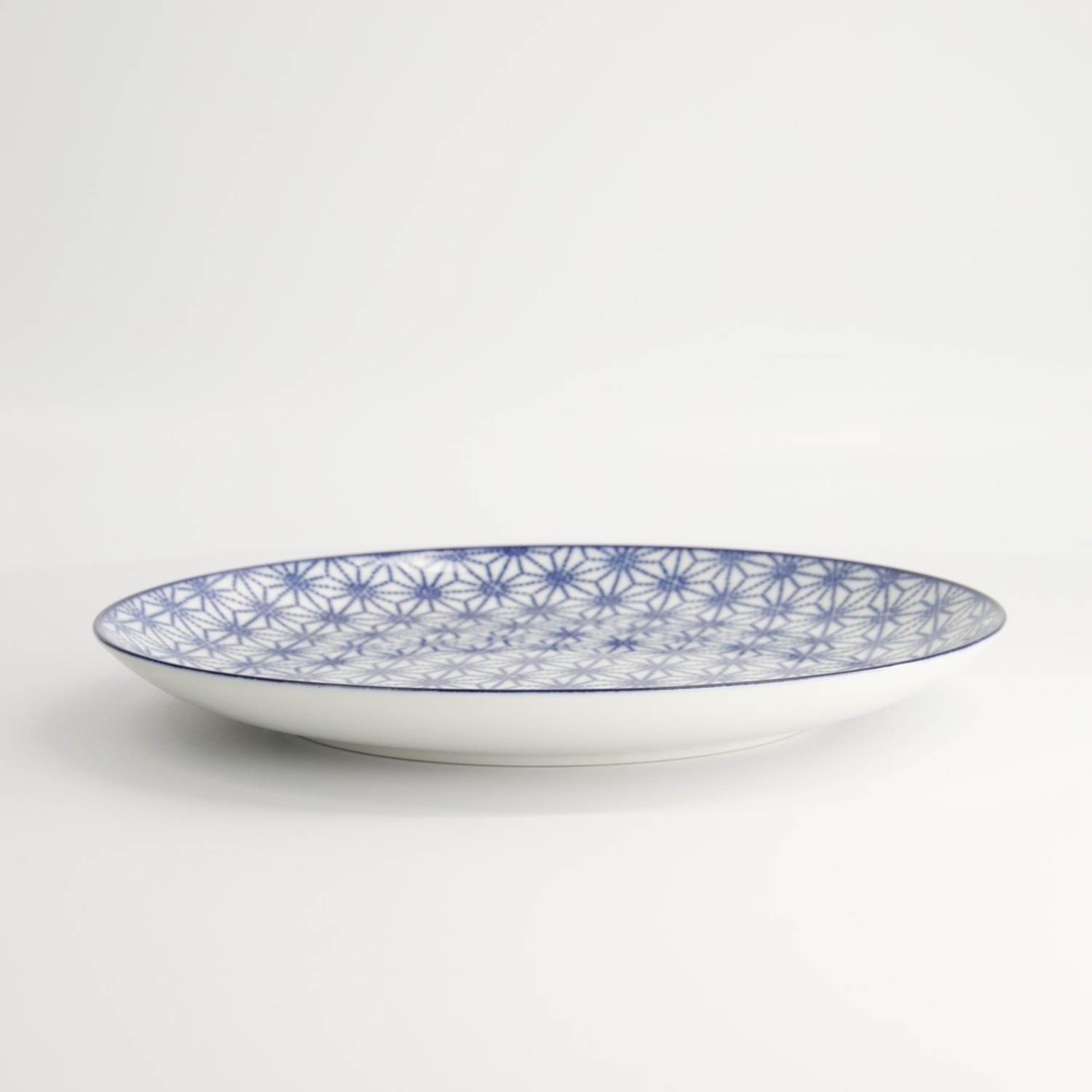 Nippon Blue Plate Star è un piatto tondo giapponese in porcellana bianca con decorazione a stelle.
