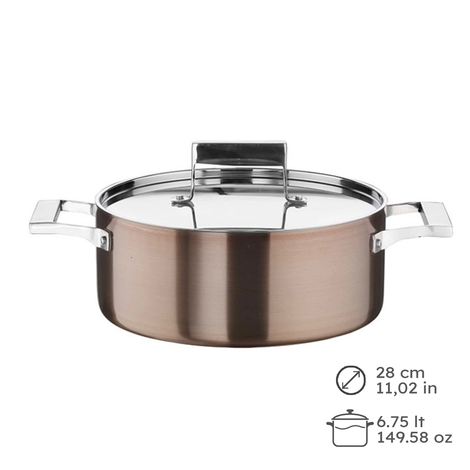 Pinti Casseruola Fonda Century in Trimetallo con Coperchio 28cm Made in Italy